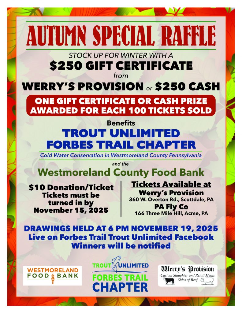 We thank our event sponsors…Westmoreland Case Management, Fish USA, Home Depot, Giant Eagle Supermarkets, Bent Rod Bait & Tackle, JTK Outdoors and TU members.