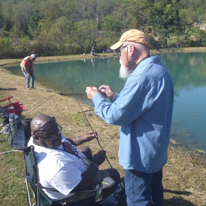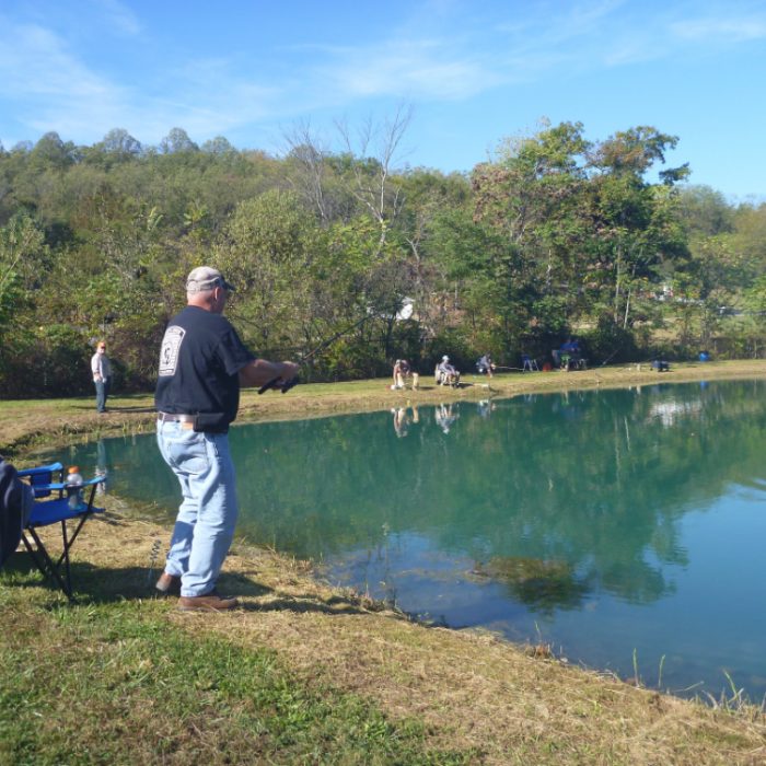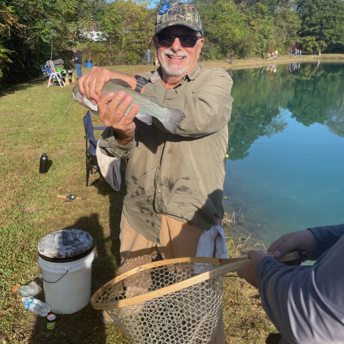 Over 40 military veterans, first responders and guests spent Saturday, October 4th enjoying the mountain air and sunshine as they fished and reacquainted with old friends. This was the seventh, annual fishing event sponsored by Forbes Trail Chapter of Trout Unlimited (TU) and hosted by their partner, Kingston Veterans Sportsmen Club.