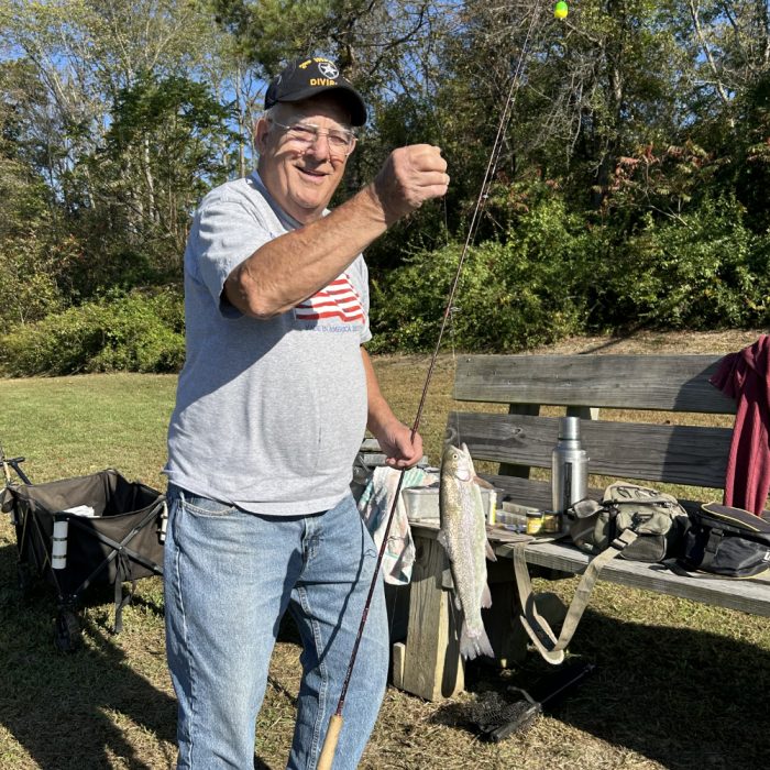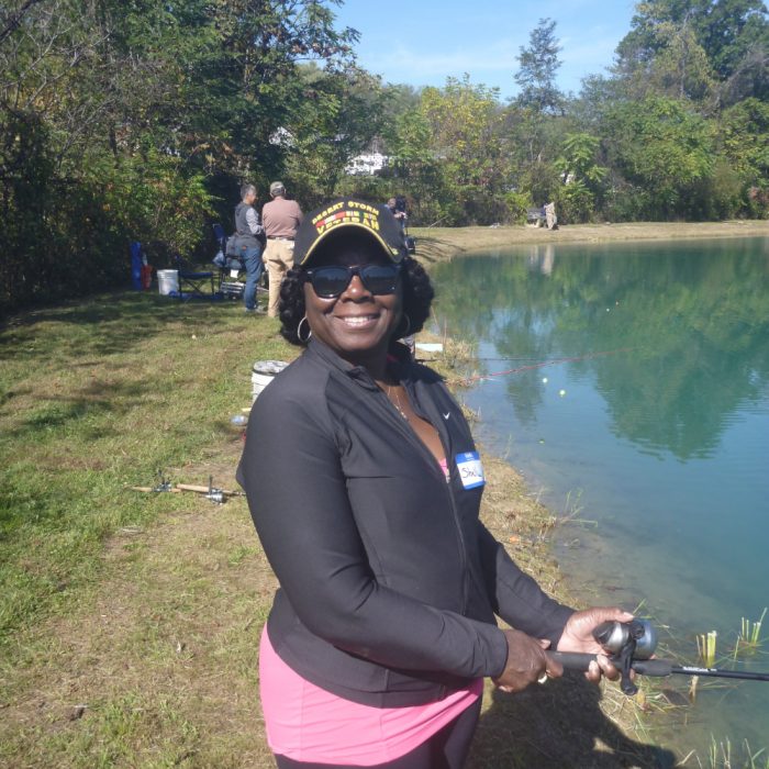 Saturday’s weather was picture perfect for the anglers…but maybe too sunny for the trout. Still, anglers landed several trout, a few catfish and plenty of bluegills. “That’s my biggest fish of the day for me!” yelled veteran Taz Bey who has participated in several of the events. Actually, the catfish she caught was one of the largest fish for anyone on Saturday. “I’ll be back again next year. It’s just nice to be out here with my family and friends.”
